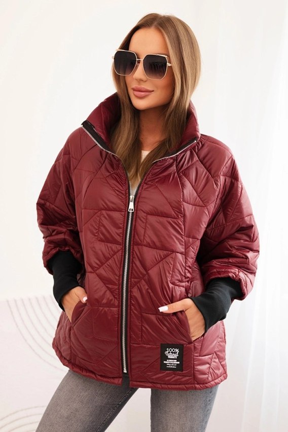 • Kurtka damska pikowana z krótkim krojem i stójką bordowa