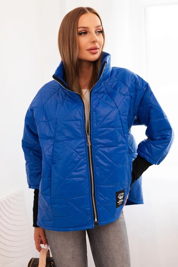 Kurtka damska pikowana z krótkim krojem i stójką chabrowa