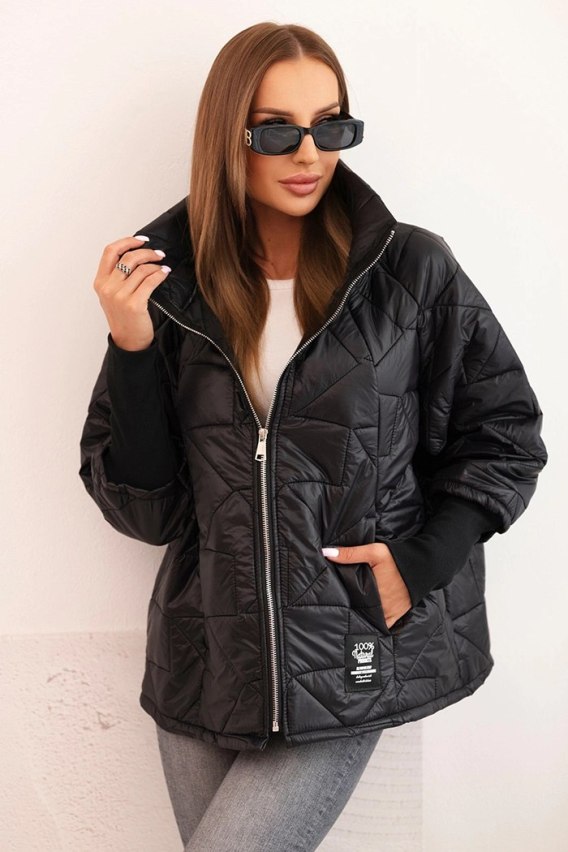Kurtka damska pikowana z krótkim krojem i stójką czarna