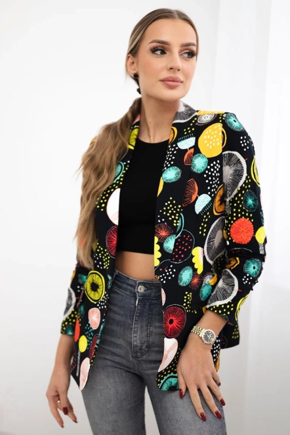 Marynarka bawełniana z kolorowym nadrukiem czarna