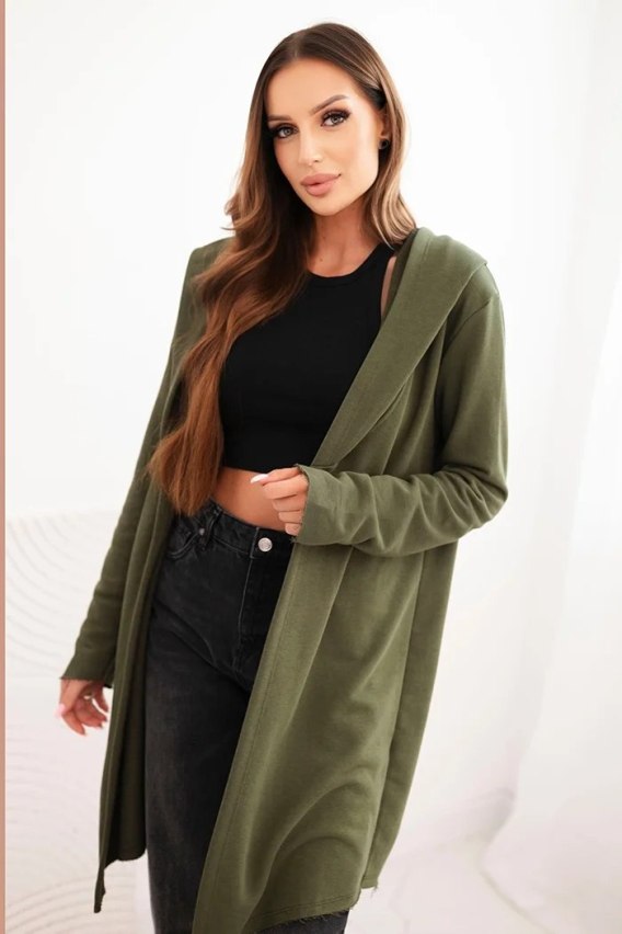 Narzutka damska z bawełny z kapturem i wydłużonym przodem khaki