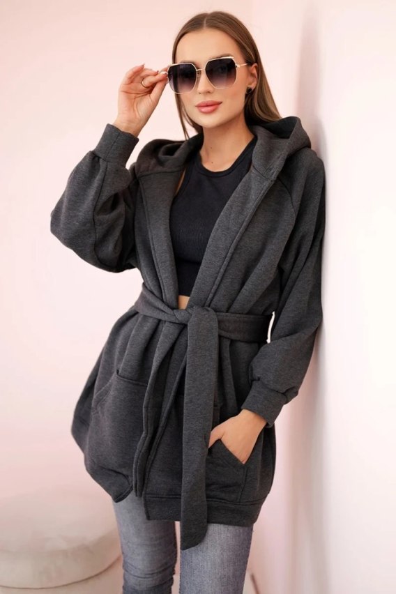Narzutka ocieplana wiązana w pasie grafitowa