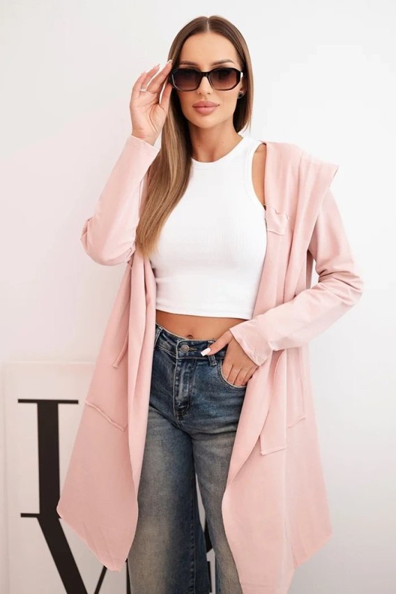 • Narzutka z luźnym kapturem ciemny pudrowy róż