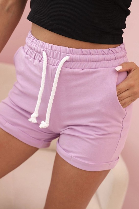Spodenki damskie bawełniane z gumką i wiązanie w pasie jasno fioletowe