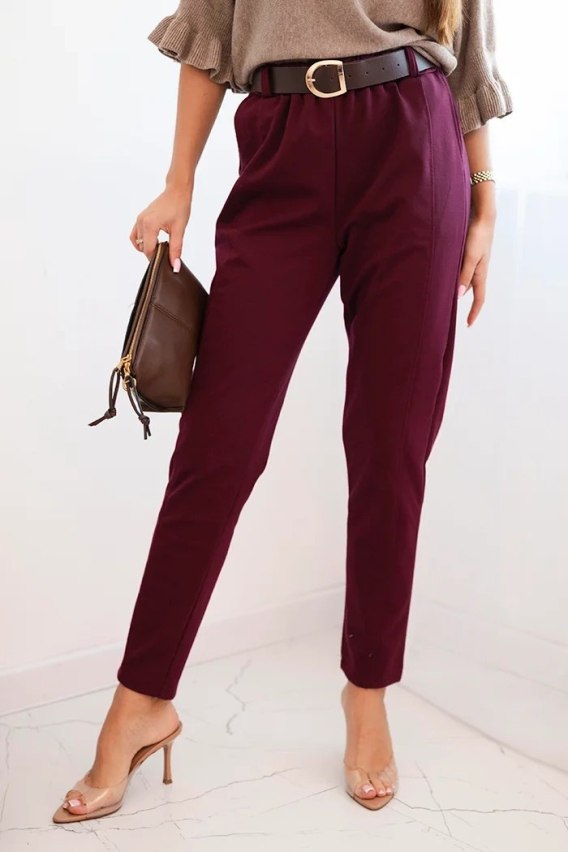 Spodnie damskie wiskozowe z paskiem i zwężaną nogawką bordowe