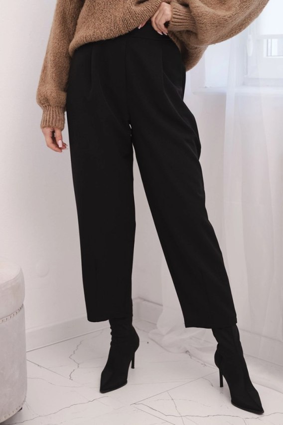 Spodnie damskie z wysokim stanem i zakładkami czarne
