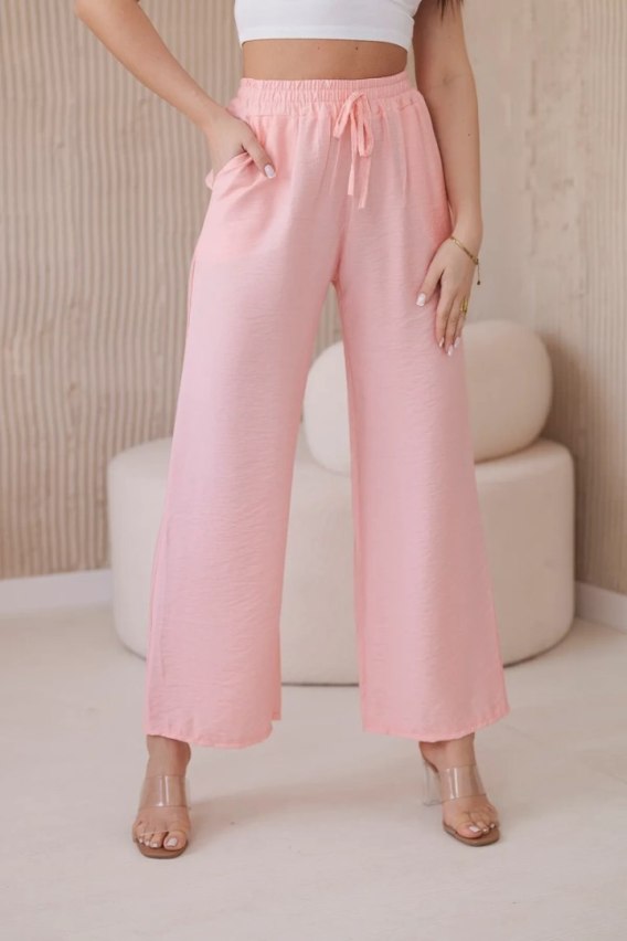 Spodnie z wiskozy z szeroką nogawką jasny pudrowy róż