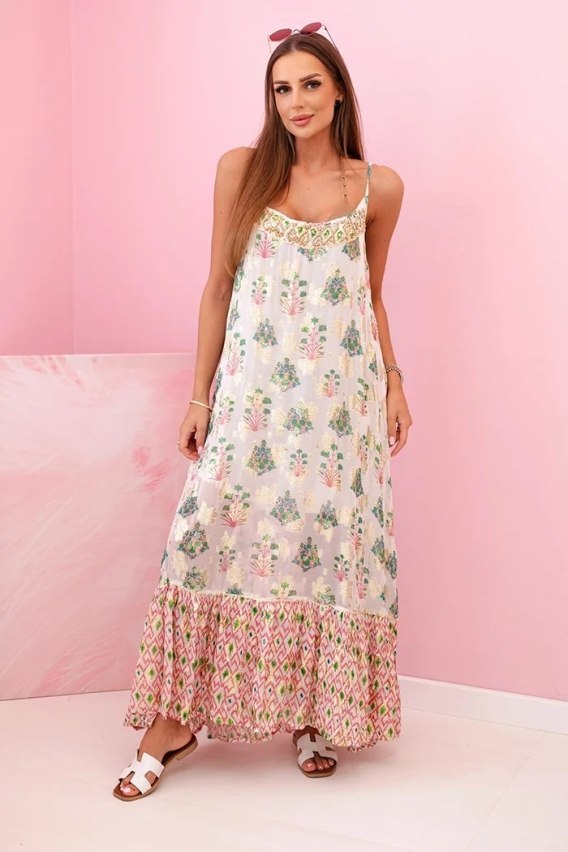 Sukienka damska na ramiączkach z lekkiej wiskozy różowa