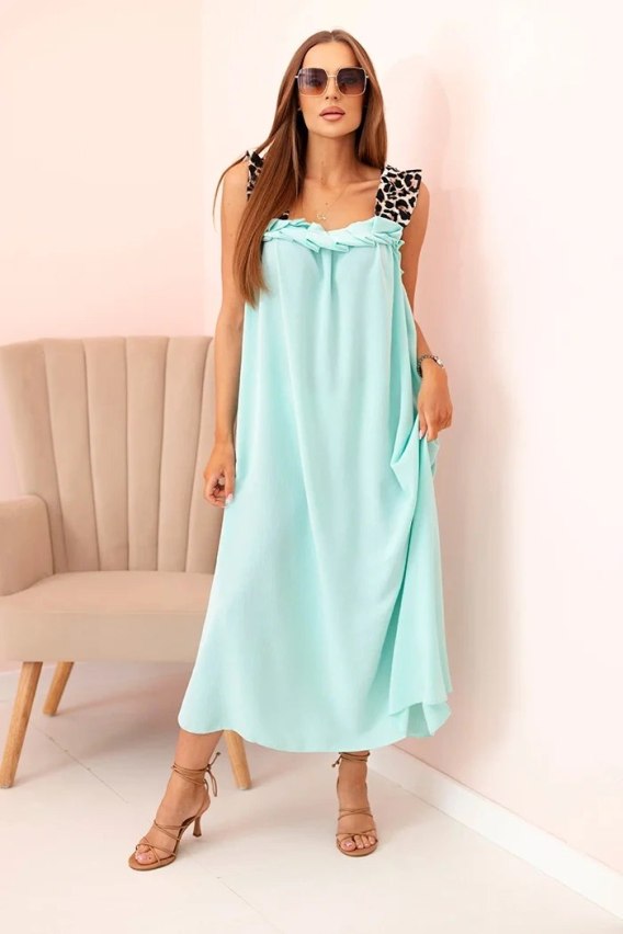 Sukienka damska z ramiączkami w panterkę miętowa