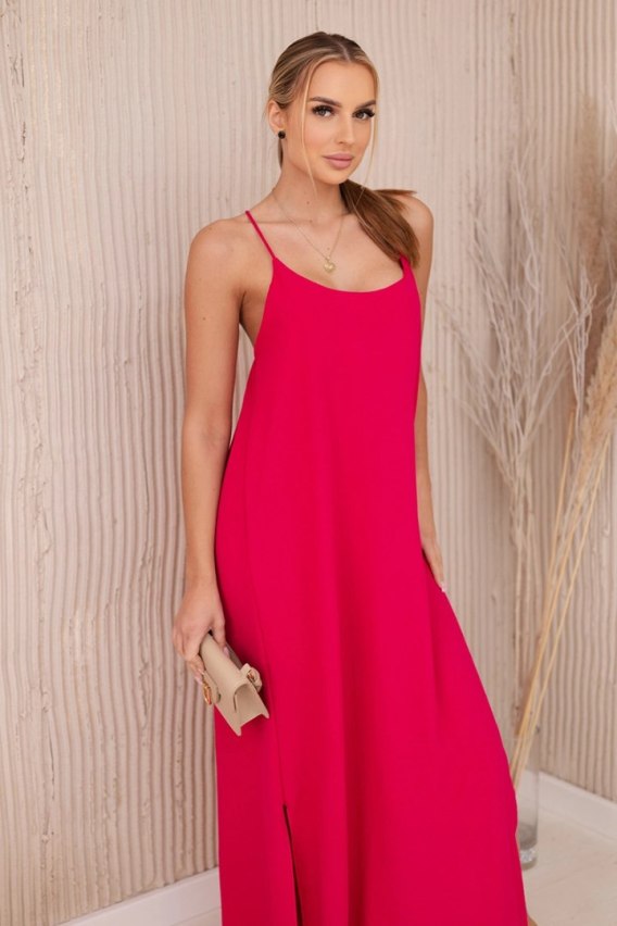 Sukienka długa na ramiączka fuksja