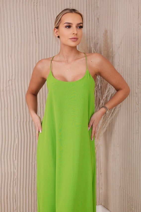 Sukienka długa na ramiączka jasno zielona
