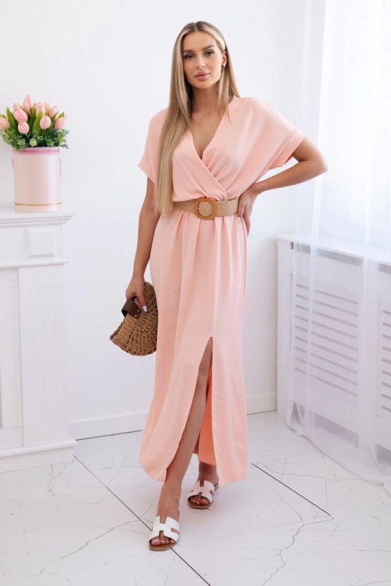 Prezentujemy Państwu wygodną sukienkę z ozdobnym paskiem. Sukienka posiada na dole rozcięcia. Sukienka wykonana jest z wysokiej jakości materiału. Bardzo ciekawa propozycja dla wszystkich Pań. Rozmiar jest uniwersalny i będzie odpowiedni dla Pań noszących rozmiar S, M lub L.