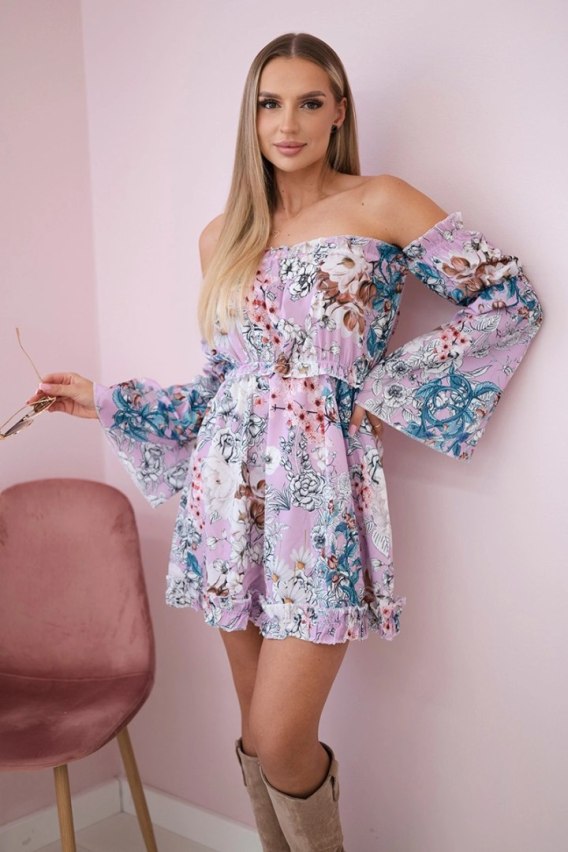 Sukienka hiszpanka w kwiaty fioletowa
