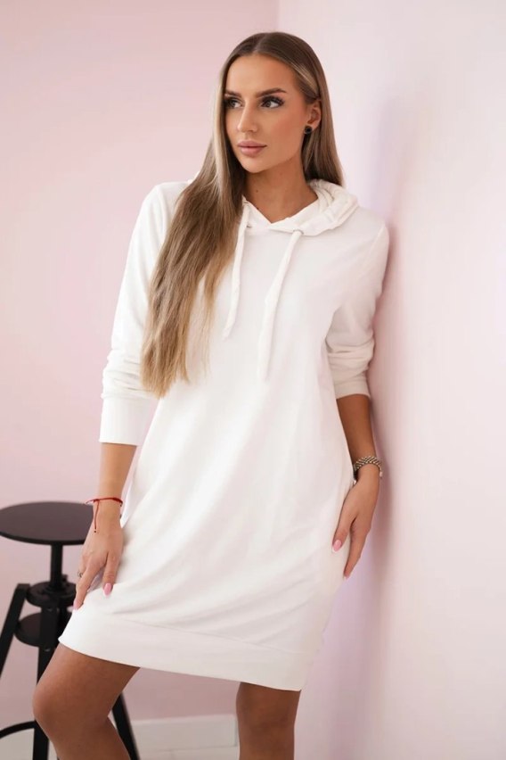 Sukienka welurowa z kapturem ecru