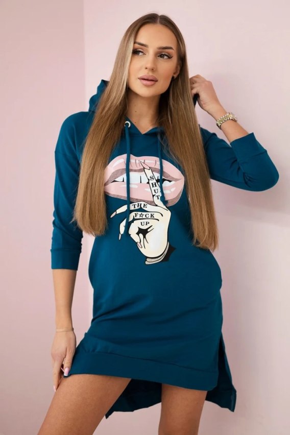 Prezentujemy Państwu wygodną sukienkę. Sukienka z kapturem, posiada modny kolorowy nadruk. Sukienka z dłuższym tyłem. Bardzo ciekawa propozycja dla wszystkich Pań. Sukienka wykonana jest z wysokiej jakości materiału. Rozmiar jest uniwersalny i będzie odpowiedni dla Pań noszących rozmiar S, M lub L.