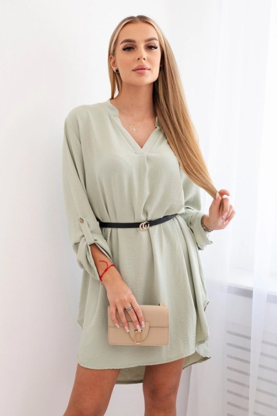 Sukienka z dłuższym tyłem i paskiem ciemno miętowa