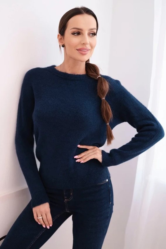Sweter damski z baby alpaki z długim rękawem granatowy