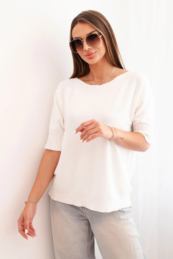 Sweter damski z wiskozy z krótkim rękawem ecru