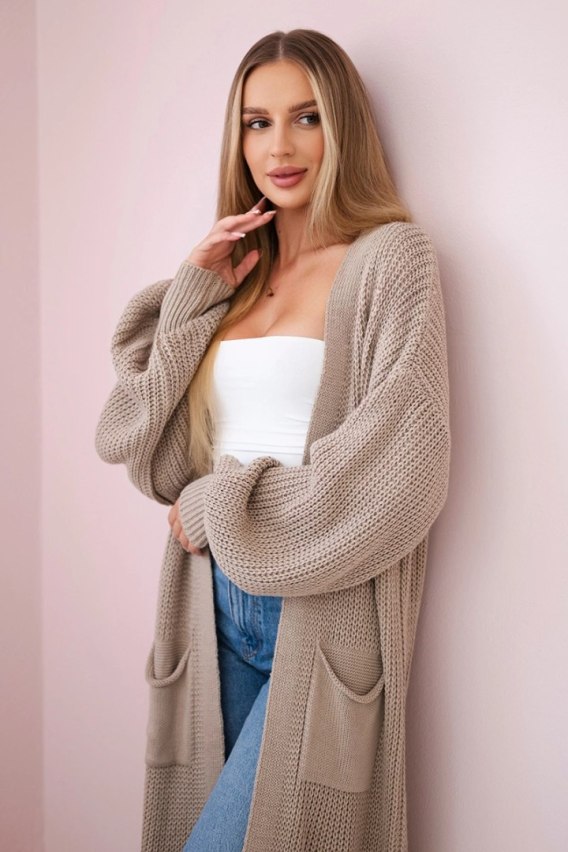 Sweter długi kardigan ciemny beżowy