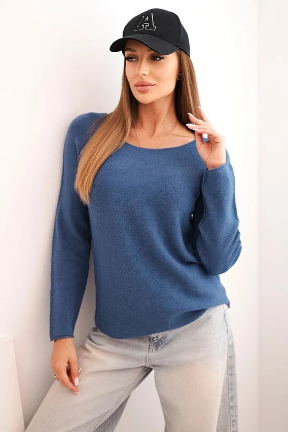 Sweterek damska z wiskozy z długim rękawem i okrągłym dekoltem jeansowy