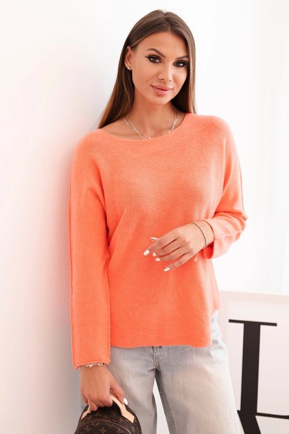 Sweterek damska z wiskozy z długim rękawem i okrągłym dekoltem łososiowy